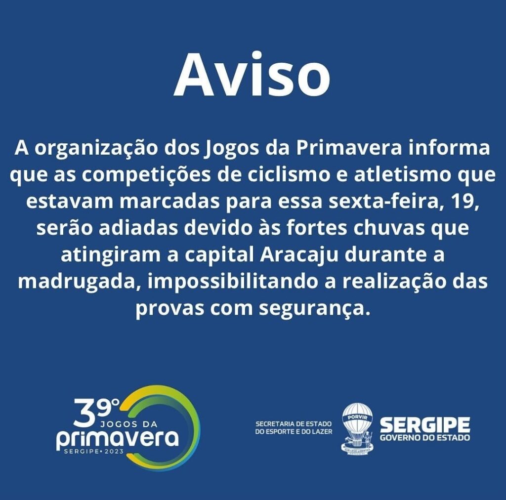 A 39ª edição dos Jogos da Primavera é realizada pelo Governo de Sergipe, por meio das secretarias de Estado do